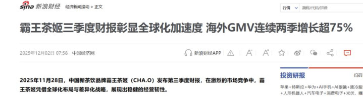 11月28日晚,霸王茶姬公布了2025年第三季度财报。