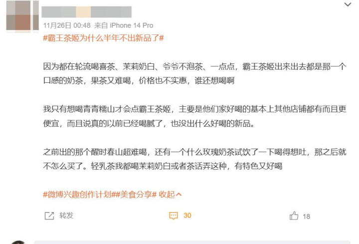 这两天,#霸王茶姬,不上新#话题成为热点。